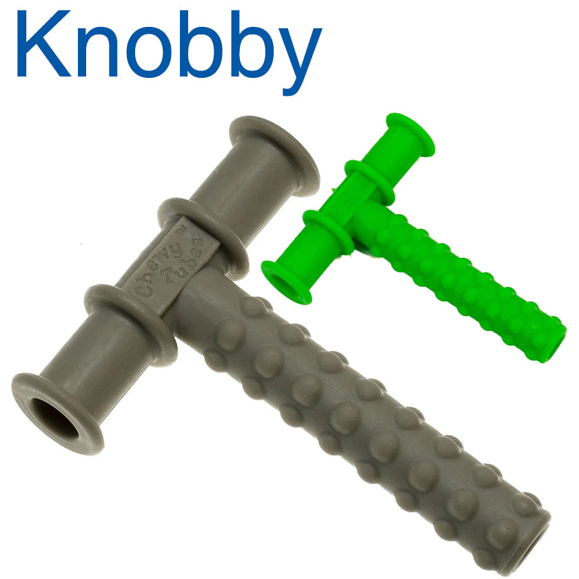 The Green Chewy Tubes offer an increase sensory input by means of raised dots on the shaft (hence the name knobby). The Green knobby Chewy Tube is slightly harder to chew on when compared with Yellow and Red Chewy Tubes.